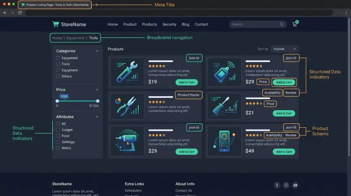 Site architecture determines the path both users and search engines take to reach the products on your site. Proper architecture uses crawl budget efficiently and distributes link equity effectively.